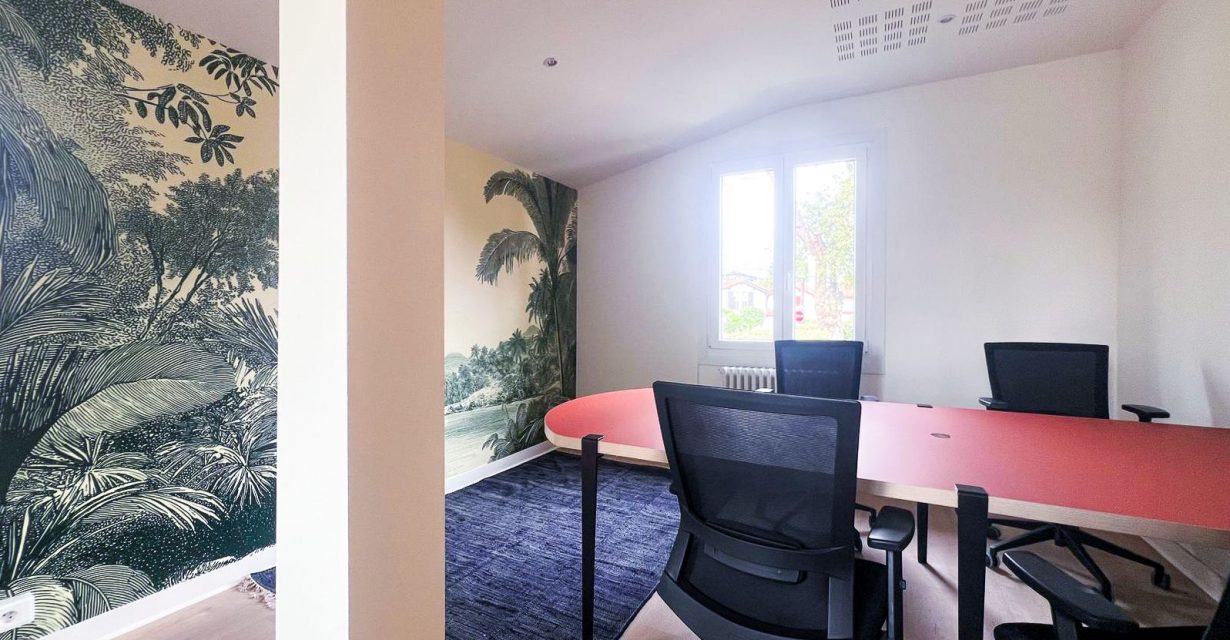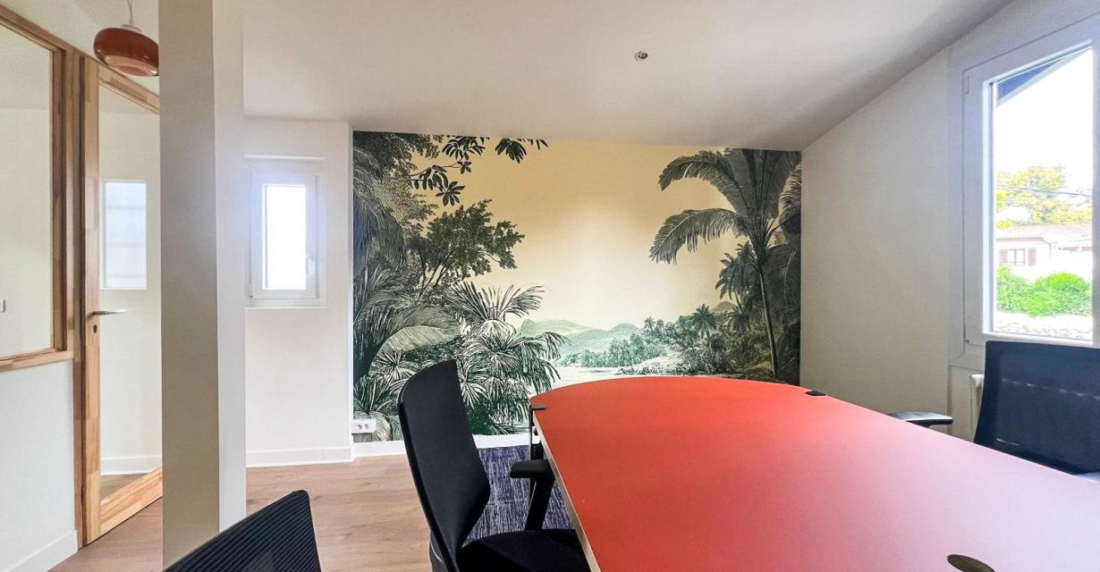 Cette jolie maison basque de 400m² accueille un ensemble de bureaux fermés et partagés ainsi que des salles de réunion, des cabines téléphoniques et des espaces pour vous retrouver le temps d’un café. Vient s’ajouter également une jolie terrasse/jardin pour vos déjeuners ensoleillés.