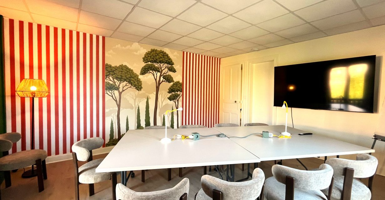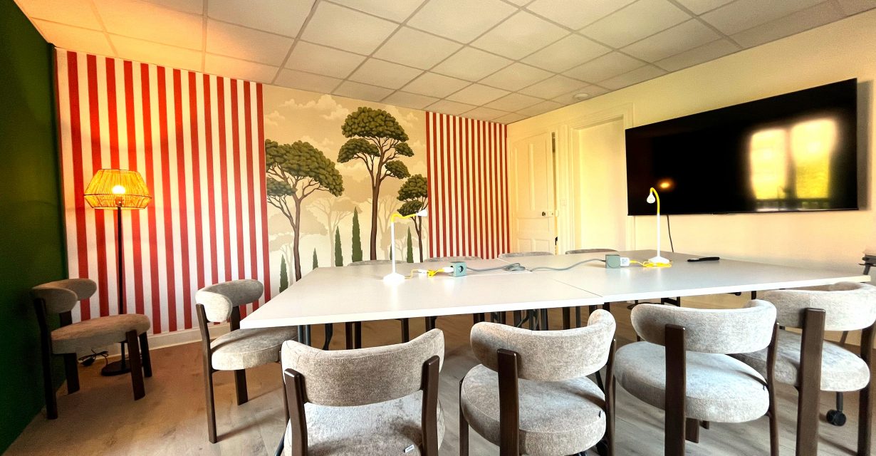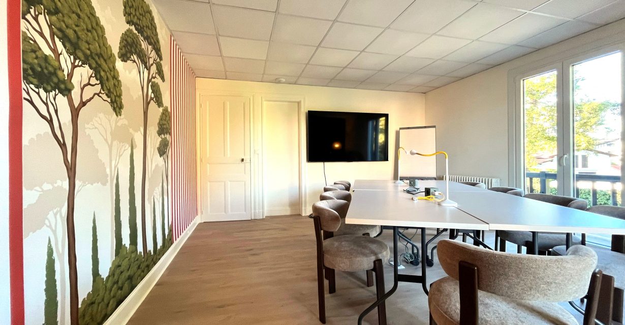 Nous mettons à votre disposition une salle de réunion pour 12 personnes. Idéale pour des réunions ou des formations, elle est équipée de la fibre, d’un écran port-hdmi, d’un paper-board. Elle se réserve à l’heure, à la demie-journée ou à la journée avec accès à l’espace extérieur pour les pauses.